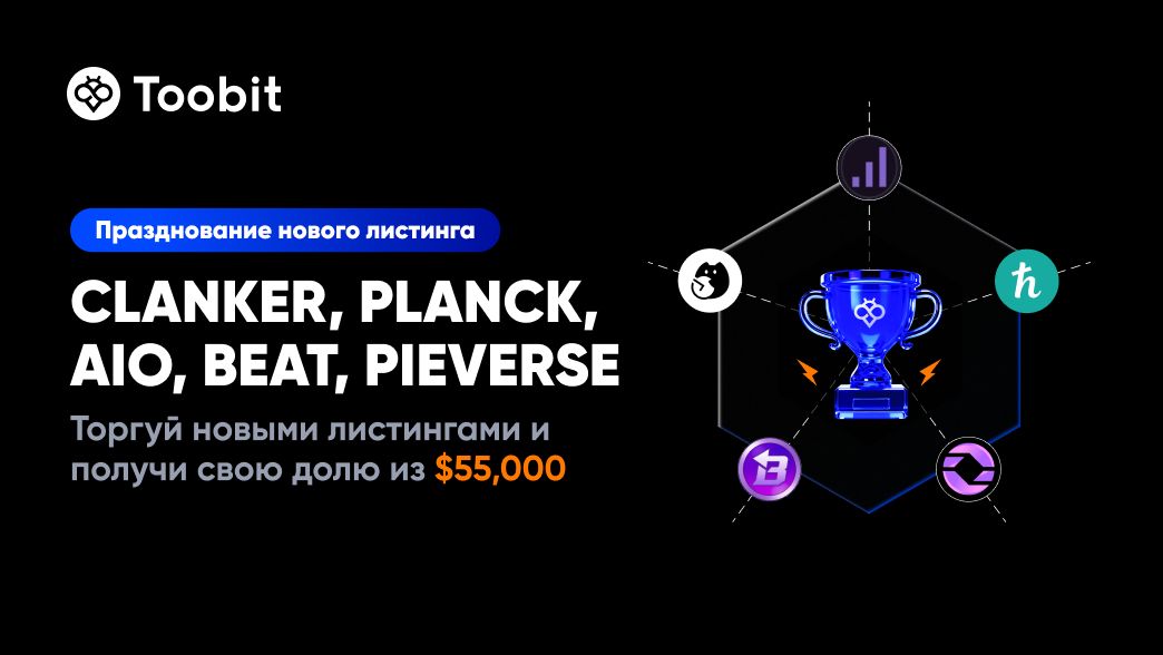 В честь листинга CLANKER, PLANCK, AIO, BEAT, PIEVERSE мы запускаем ограниченное по времени торговое событие с призовым фондом $55,000.