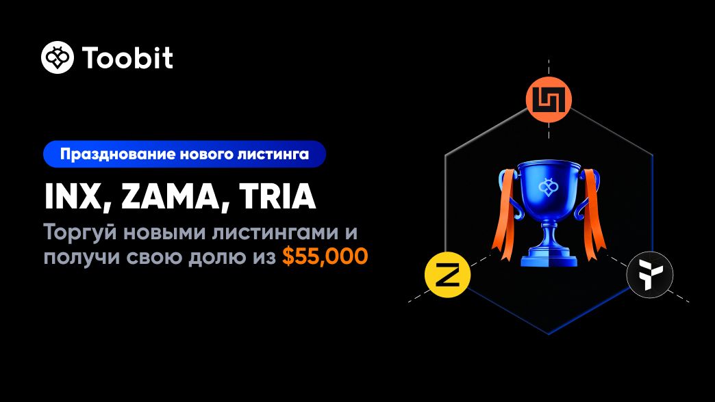 В честь листинга INX, ZAMA, TRIA мы запускаем ограниченное по времени торговое мероприятие с призовым фондом $55 000.