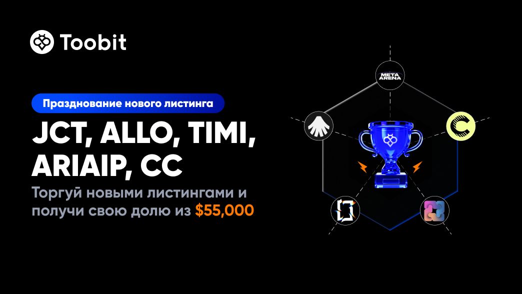 В честь листинга JCT, ALLO, TIMI, ARIAIP, CC мы запускаем ограниченное по времени торговое событие с призовым фондом $55,000.