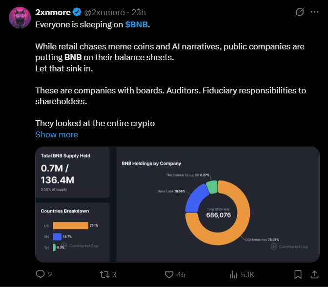 Пост сообщества о BNB на платформе X