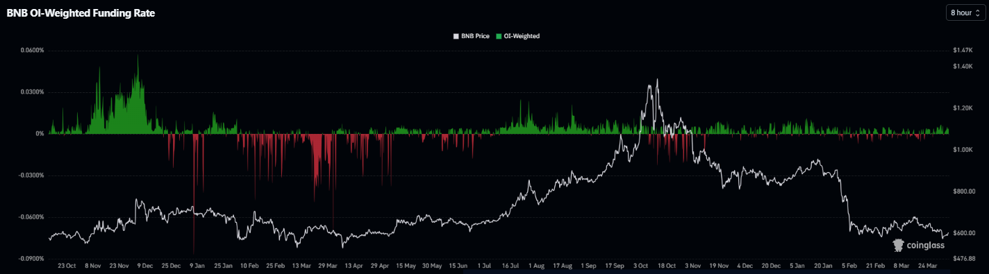Взвешенная по OI ставка финансирования BNB от Coinglass на 6 апреля 2026 г., около 06:00 (UTC)