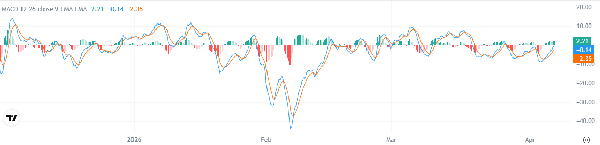 Индикатор MACD (схождение/расхождение скользящих средних) показал улучшение: он снова выше нуля, а гистограмма имеет положительное значение. Это указывает на ослабление негативного давления и усиление конструктивного импульса, хотя более широкий график еще не полностью развернулся.