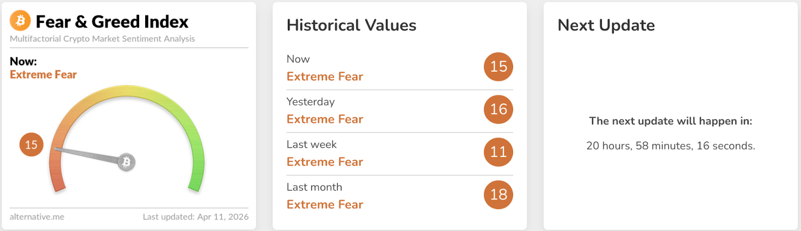 Индекс страха и жадности криптовалют на 11 апреля 2026 года от Alternative.me