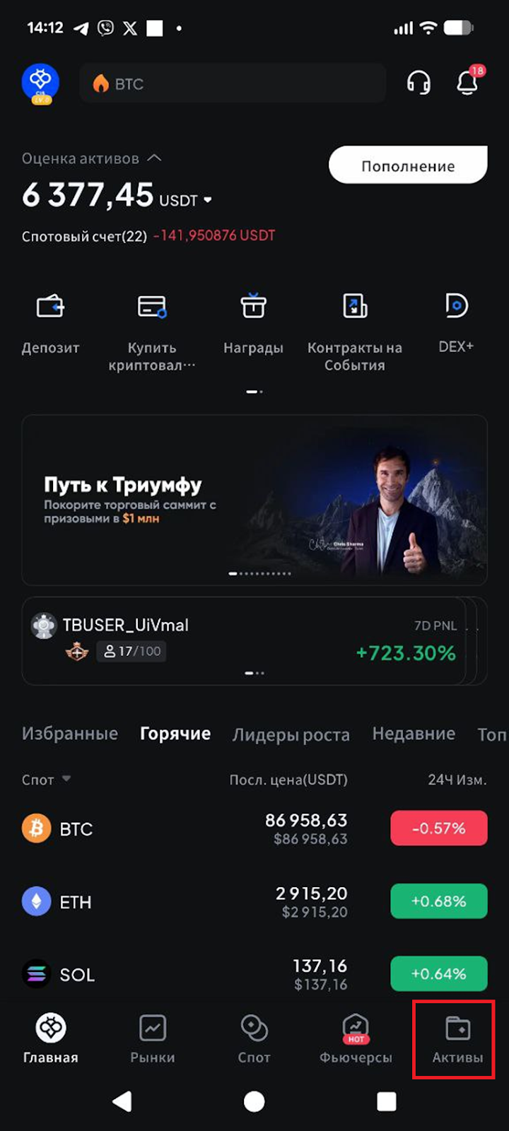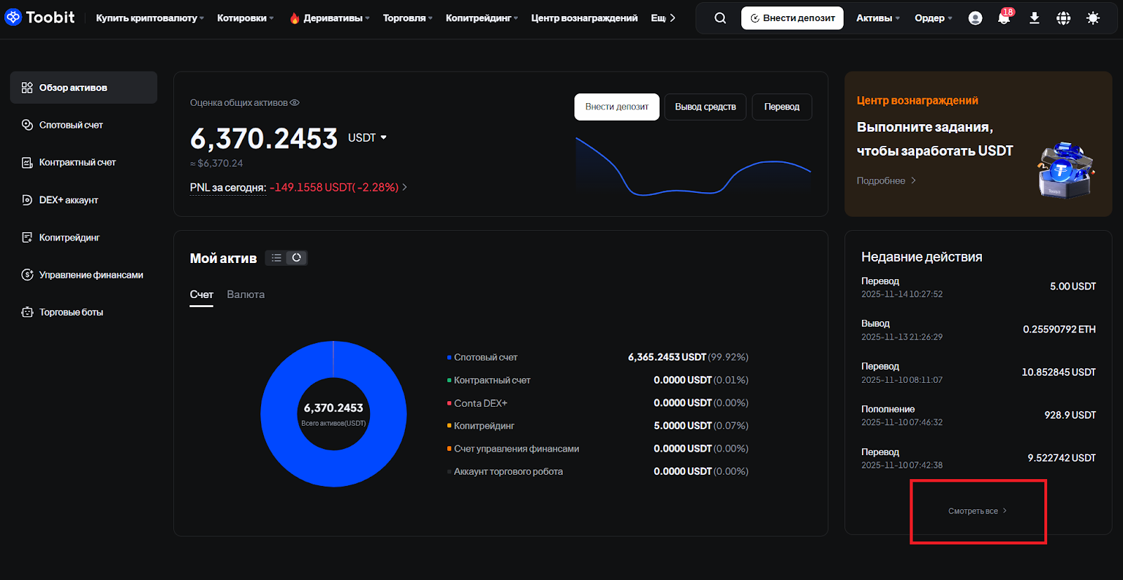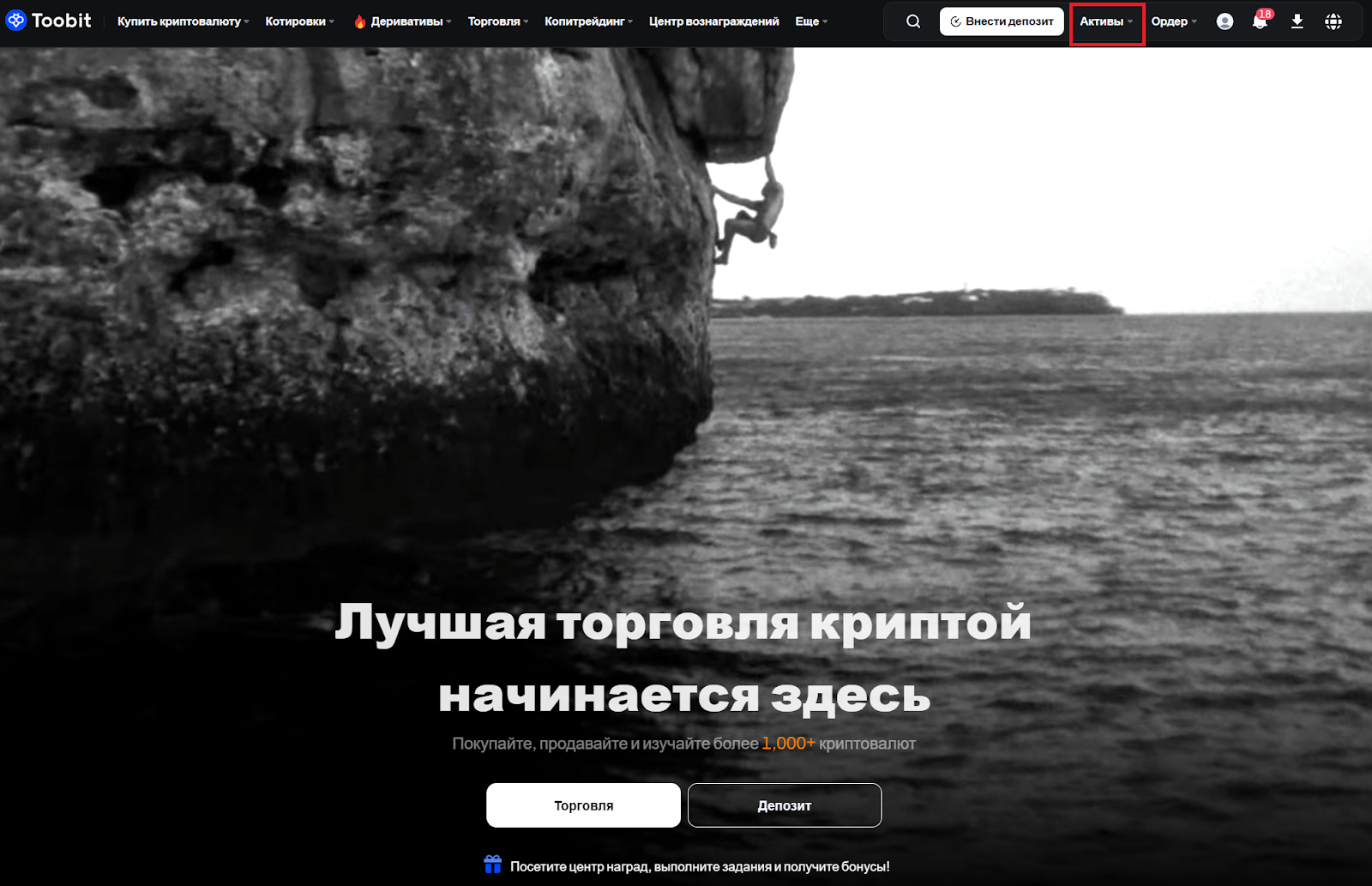 Войдите в свою учетную запись Toobit и нажмите [Активы] в правом верхнем углу.