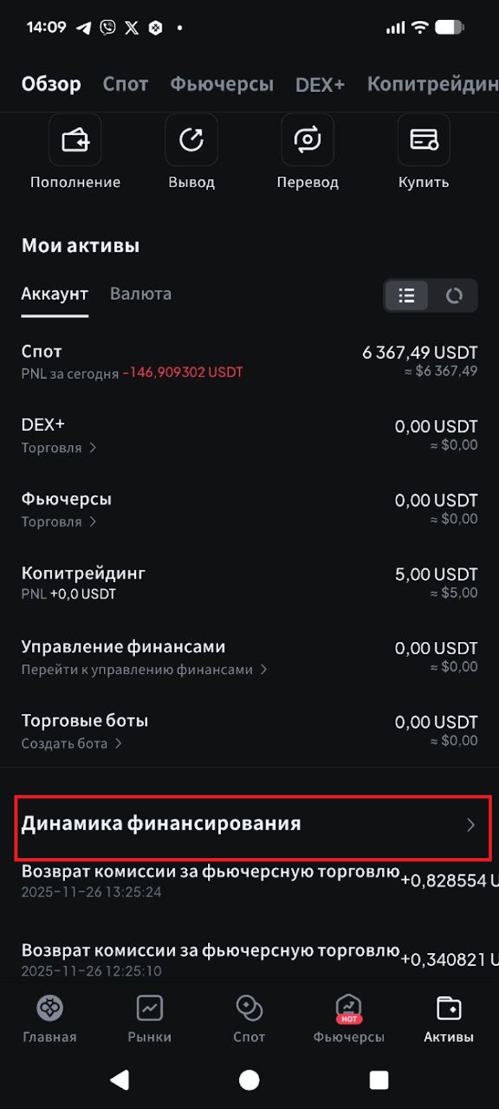 Прокрутите вниз и нажмите [Динамика финансирования].