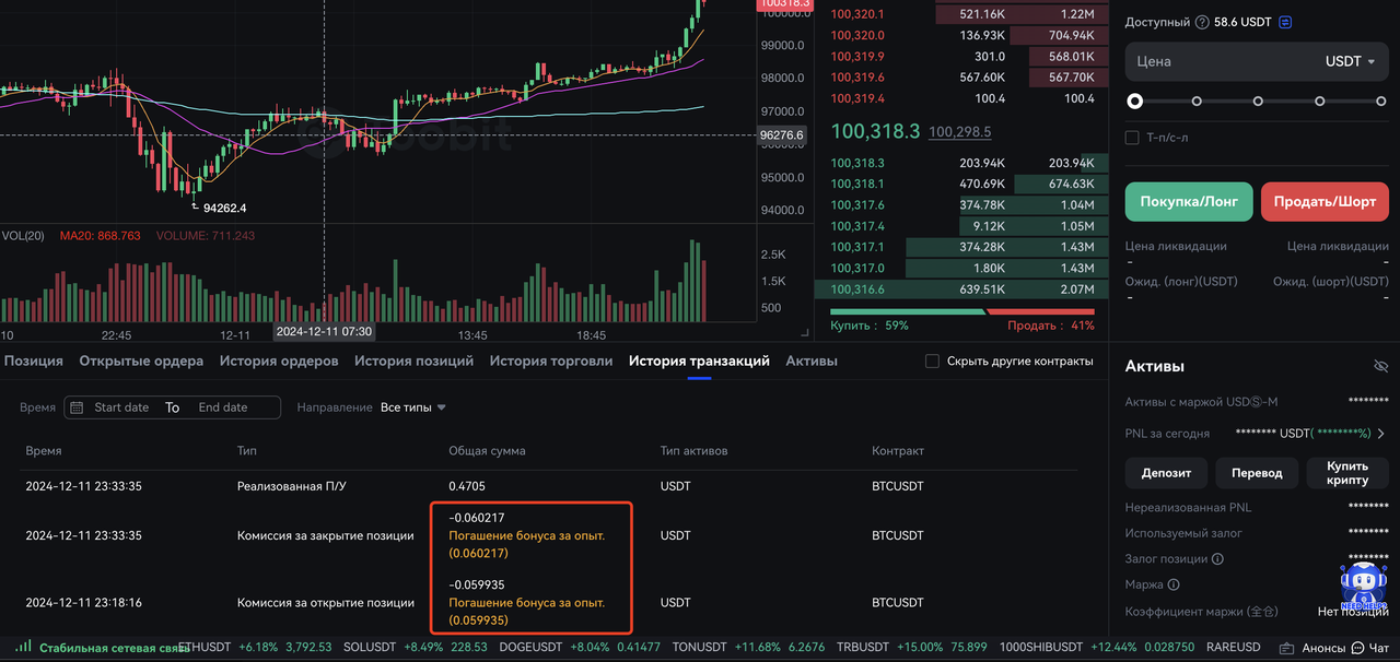 После закрытия позиции пользователям рекомендуется проверить такие детали, как торговые сборы и сборы за финансирование, в разделе «История транзакций», чтобы узнать, как были использованы пробные средства.