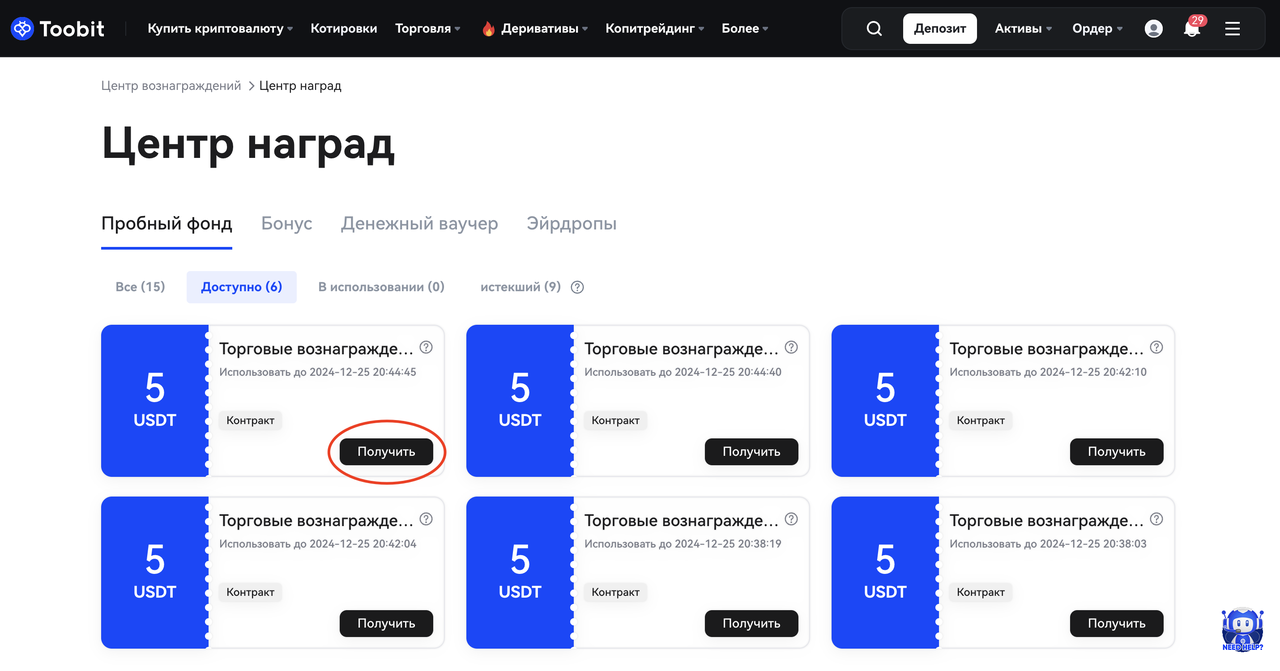 Пробные средства в Центре ваучеров должны быть «заявлены», прежде чем их можно будет использовать для торговли. (Право на получение средств зависит от выполнения определенных требований, таких как баланс активов, PNL и объем торгов, в соответствии с условиями использования средств. Подробнее читайте выше)