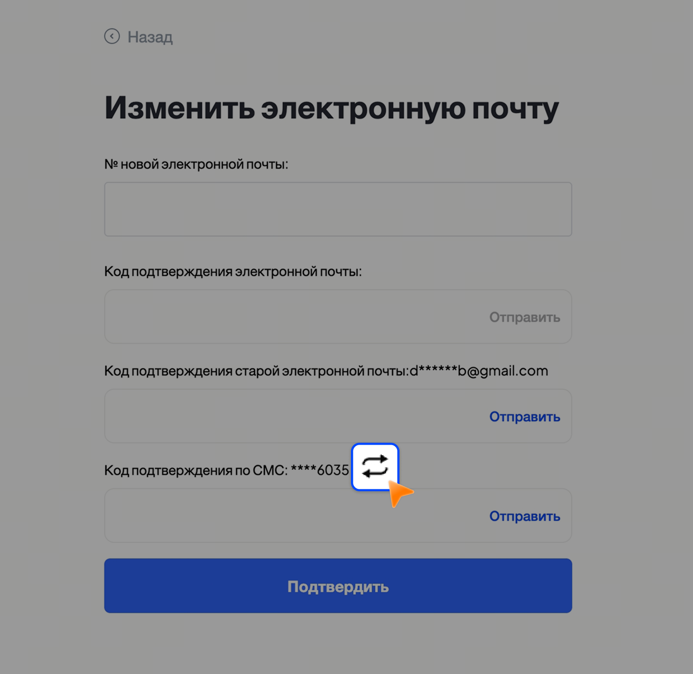 Когда потребуется код верификации, нажмите на иконку переключения, чтобы сменить способ получения кода с SMS на WhatsApp.