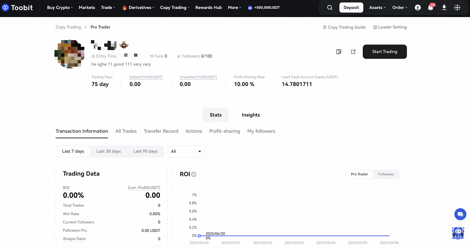 - Profit Sharing Rate: For more details, please refer to theToobit Copy Trading: Trader Tier System Upgrade