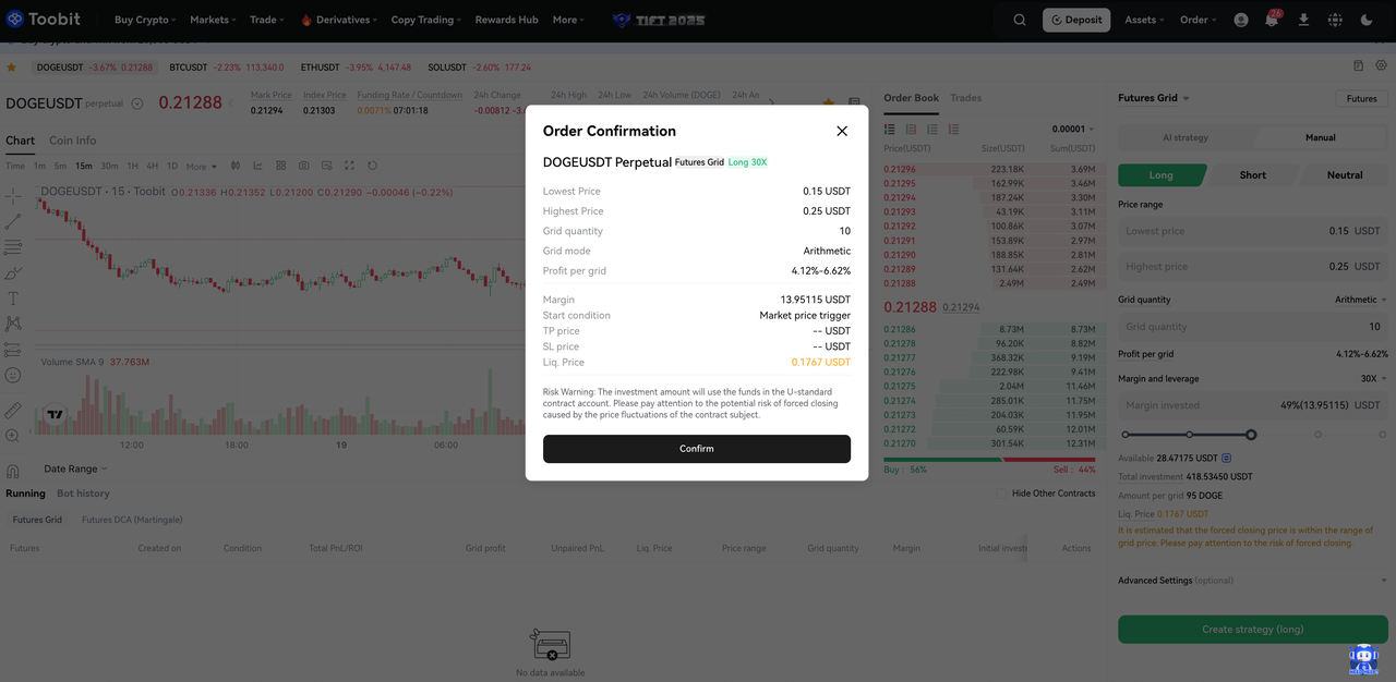 Here's a step-by-step guide to creating your first Futures Grid Bot on Toobit.
