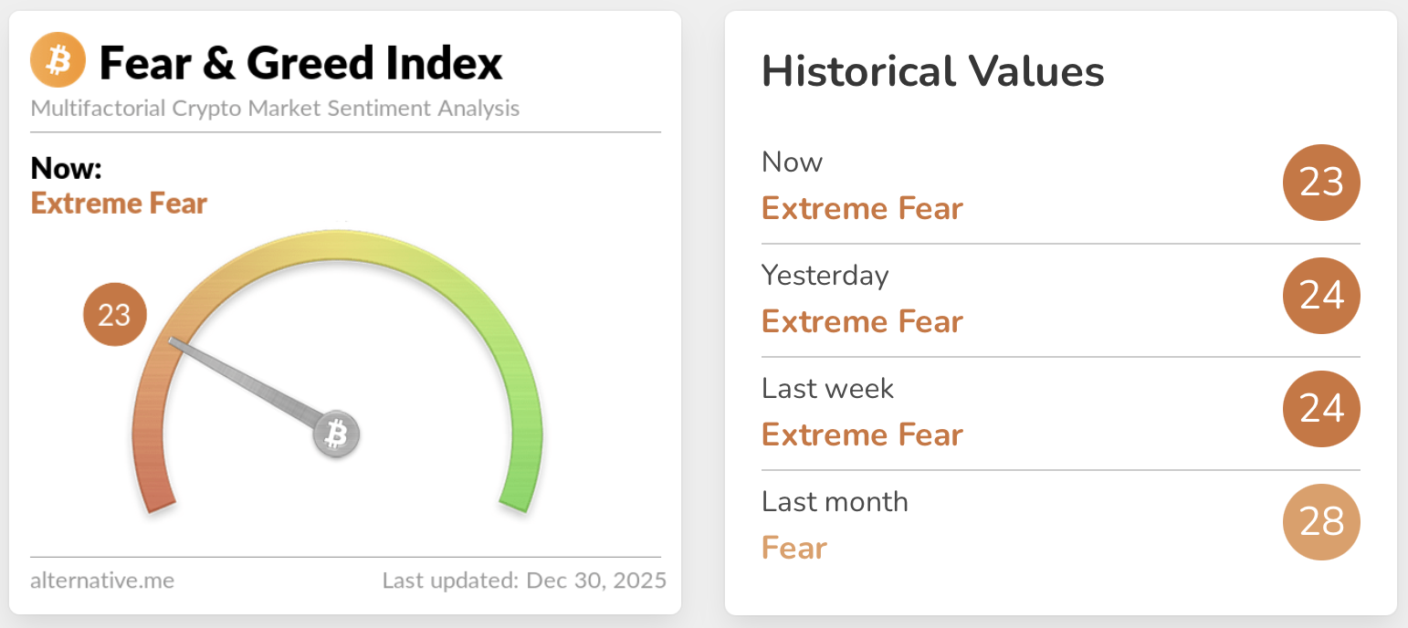 Piyasalar yıl sonuna kadar savunmada kaldı, BTC hakimiyeti %59,53 ve Korku ve Açgözlülük Endeksi 23 seviyesindeydi.