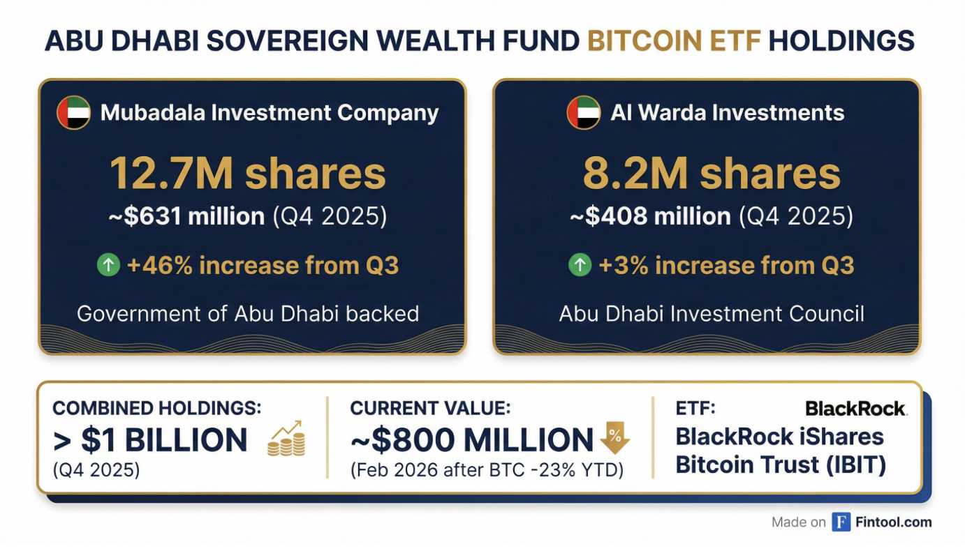 Zamanlama da dikkat çekiciydi. Bitcoin, 2025'in 4. çeyreğinde %23 civarında düştü ve spot ETF onaylarının azalması ve artan makro rüzgarlar arasında. Bu, Abu Dabi'nin birleşik pozisyonunu mevcut fiyatlarla yaklaşık 800 milyon dolara düşürdü. 2026'dan bu yana yaklaşık 230 milyon dolarlık kağıt kaybına rağmen, her iki fondan da strateji değişikliği belirtisi yoktu.