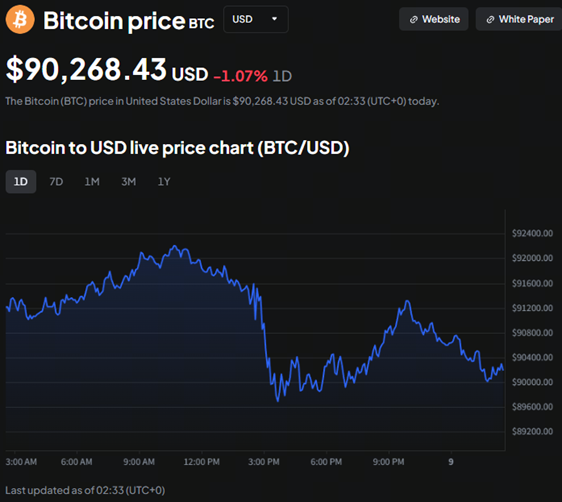 Tại thời điểm viết bài, giá Bitcoin đang giao dịch quanh mức 90.000 đô la, một sự khác biệt lớn so với mức cao nhất mọi thời đại (ATH) trên 126.000 đô la vào tháng 10.