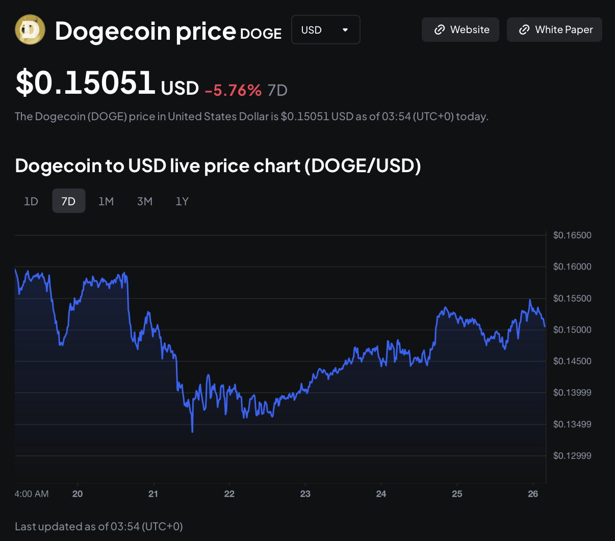 Giá Dogecoin đang giao dịch gần $0.15, giảm 5.76% trong tuần qua.