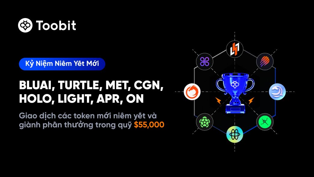 Để chào mừng việc niêm yết BLUAI, TURTLE, MET, CGN, HOLO, LIGHT, APR, ON, chúng tôi tổ chức một sự kiện giao dịch có thời hạn với tổng giải thưởng trị giá $55,000.