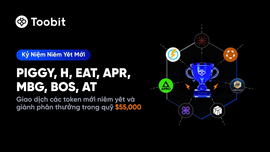 Để chào mừng việc niêm yết PIGGY, H, EAT, APR, MBG, BOS, AT, chúng tôi tổ chức một sự kiện giao dịch có thời hạn với tổng giải thưởng trị giá 55,000 đô la.