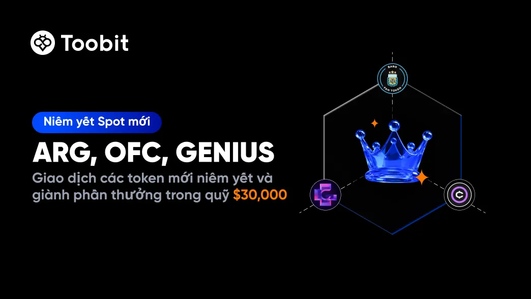 ARG, OFC, GENIUS đã chính thức có mặt trên Toobit, và chúng tôi đang tổ chức một sự kiện lớn để chào mừng. Tham gia chiến dịch giao dịch độc quyền của chúng tôi và nhận phần của bạn từ quỹ giải thưởng trị giá $30,000, bao gồm 10,000 USDT tiền thưởng và $20,000 trong airdrop token.