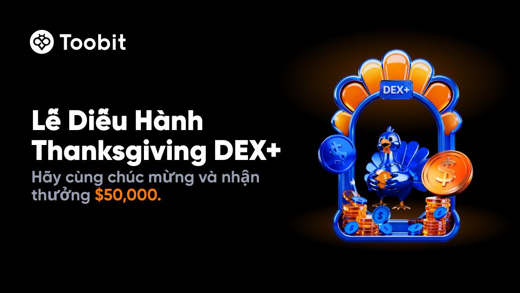 Năm nay, chúng tôi thêm phần thưởng đặc biệt vào sự kiện. Tham gia Cuộc Diễu Hành Lễ Tạ Ơn trên DEX+ và mở khóa quỹ giải thưởng 50,000 USDT được chuẩn bị riêng cho cộng đồng tuyệt vời của chúng tôi. Giao dịch để nhận phần thưởng và làm cho mùa lễ này trở nên đáng nhớ.