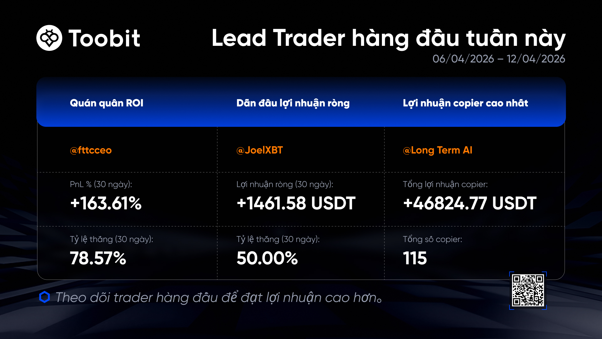 Tuần này, ba Nhà giao dịch dẫn đầu đã thể hiện hiệu suất xuất sắc trong 30 ngày qua. Họ là những chuyên gia thực thụ, không phải những lựa chọn may mắn. Hãy theo dõi họ để giao dịch thông minh hơn và học hỏi từ những người giỏi nhất.