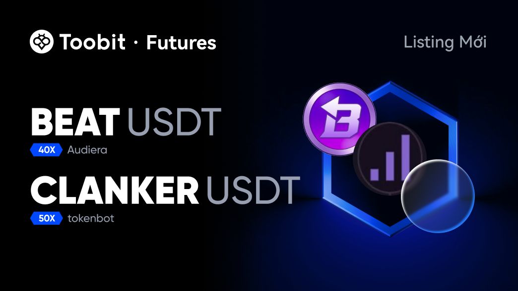 Chúng tôi rất vui mừng thông báo rằng Toobit sẽ niêm yết các Hợp đồng Vĩnh viễn BEAT và CLANKER vào ngày 2025-11-12 (UTC). Giao dịch sẽ được mở với đòn bẩy lên đến 50x.