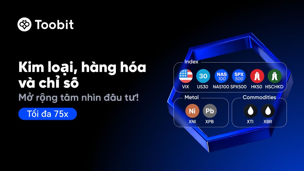 Chúng tôi rất vui mừng thông báo rằng Toobit sẽ niêm yết nhiều Hợp đồng Vĩnh viễn Chỉ số, Kim loại & Hàng hóa vào ngày 2026-03-09 (UTC). Giao dịch sẽ được mở với đòn bẩy lên đến 75x, mang đến cho bạn cơ hội đa dạng để giao dịch các chỉ số toàn cầu, kim loại và hàng hóa năng lượng.