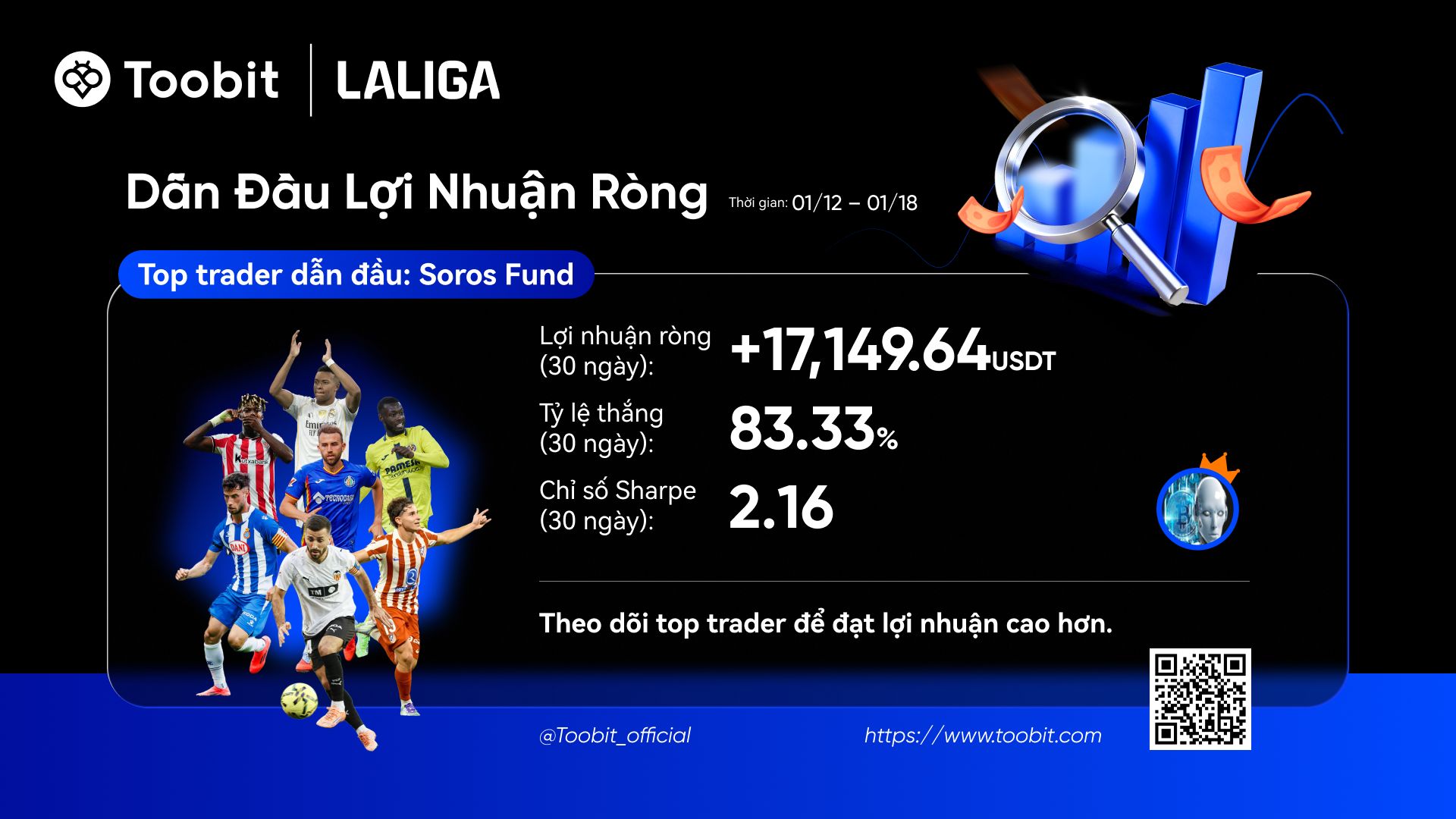 Để giúp bạn đưa ra quyết định thông minh trong hệ sinh thái Copy Trading của chúng tôi, chúng tôi đã phát hành Bảng xếp hạng Nhà giao dịch hàng đầu hàng tuần. Dựa trên dữ liệu từ 30 ngày qua, chúng tôi đánh giá các nhà giao dịch qua 3 khía cạnh chính: ROI, lợi nhuận ròng và thu nhập từ người sao chép.
