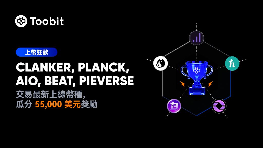 為慶祝 CLANKER、PLANCK、AIO、BEAT、PIEVERSE 上市,我們推出了一個限時交易活動,獎池高達 $55,000。