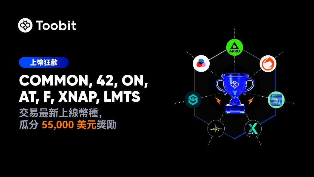 成為首批 1,000 名交易者之一,單筆交易存入至少價值 50 USDT 的 COMMON, 42, ON, AT, F, XNAP, LMTS,即可獲得 10 USDT 獎金。