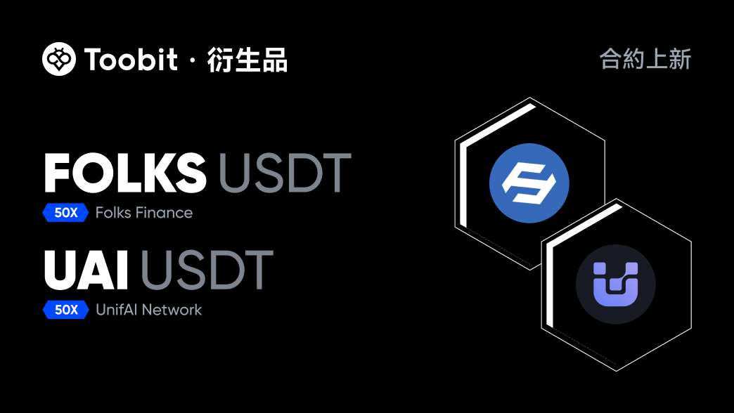 我們很高興地宣布,Toobit 將於 2025-11-06 (UTC) 上線 FOLKS 和 UAI 永續合約。交易將以高達 50 倍槓桿進行。