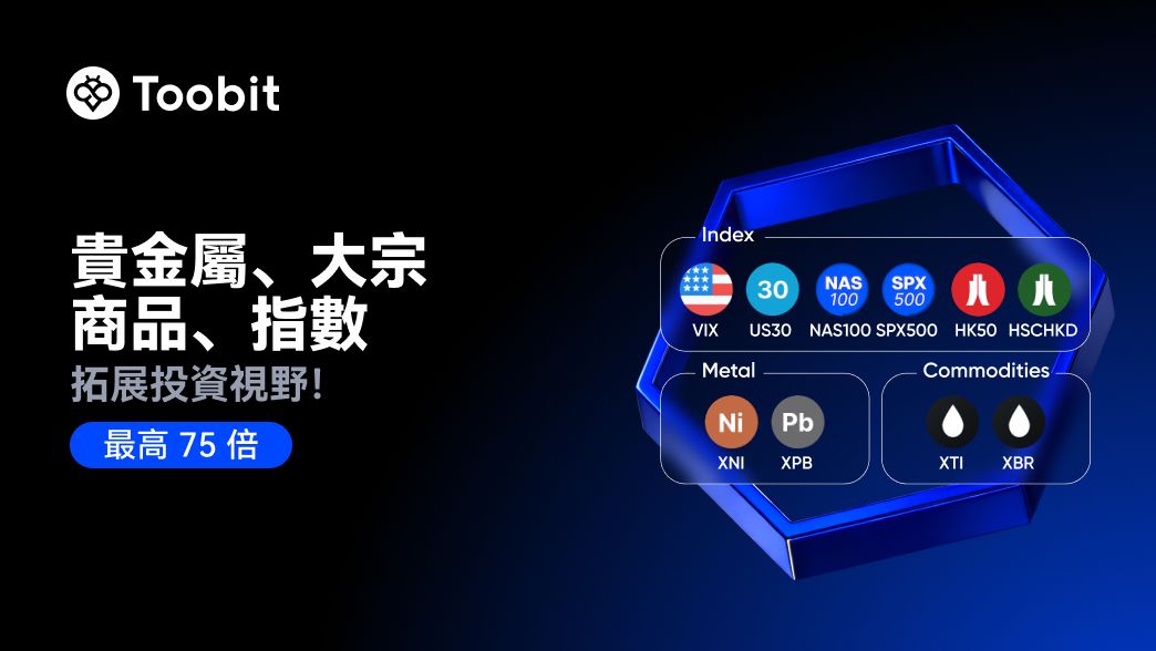 我們很高興地宣布,Toobit 將於 2026-03-09 (UTC) 上市多個指數、金屬及商品永續合約。交易將以高達 75 倍槓桿進行,為您提供多元化的機會來交易全球指數、金屬和能源商品。