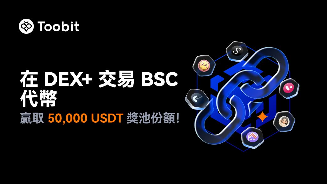 今天開始您的 Toobit 之旅。在活動期間註冊,交易 DEX+ 上的 BSC 代幣,並獲得 20,000 USDT 獎池的一部分。