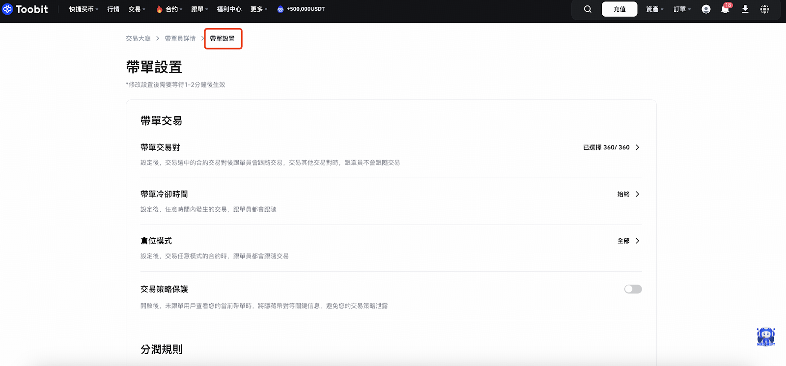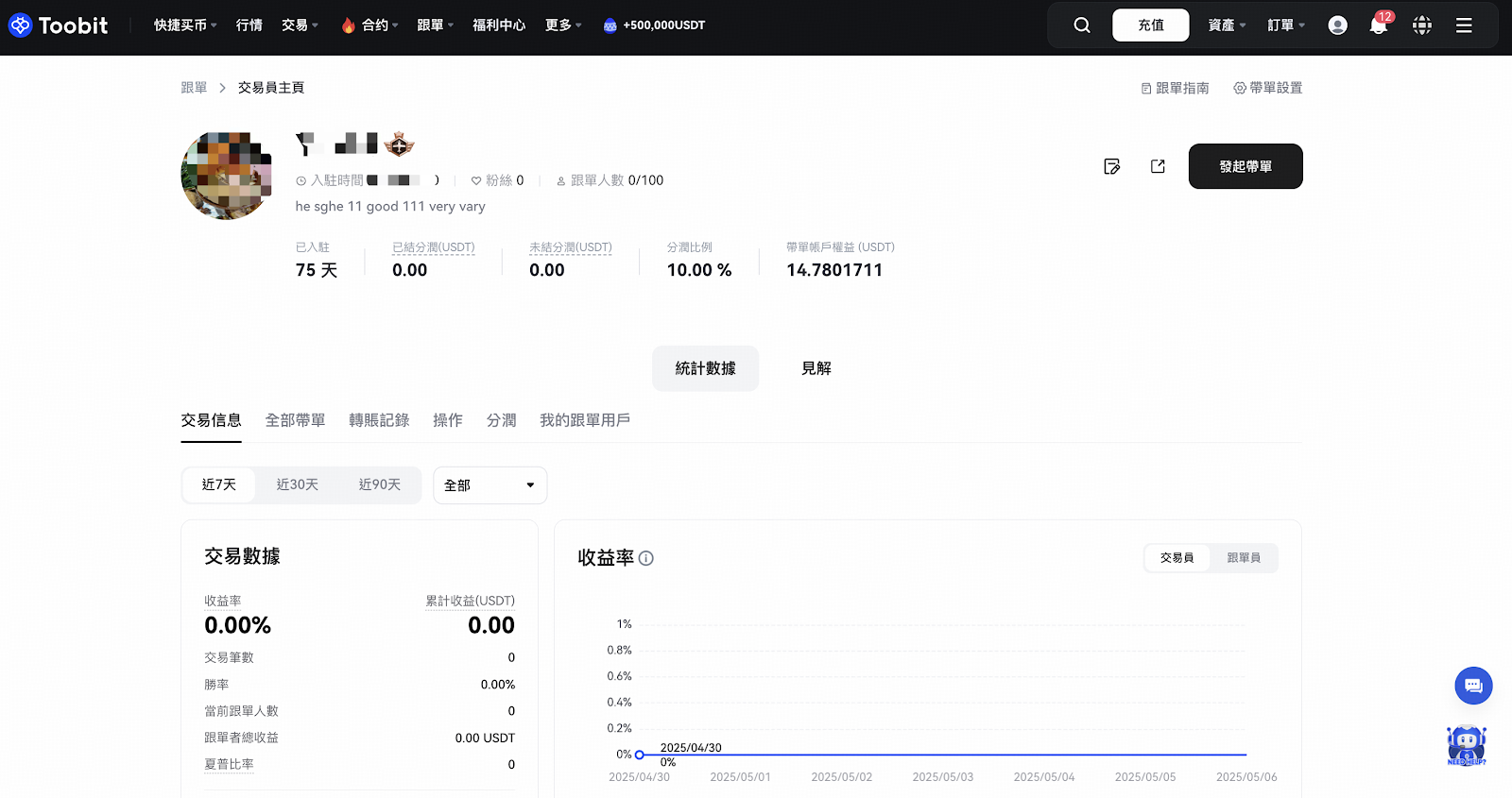 分潤比例:詳情參考Toobit 跟單:交易員等級制度升級