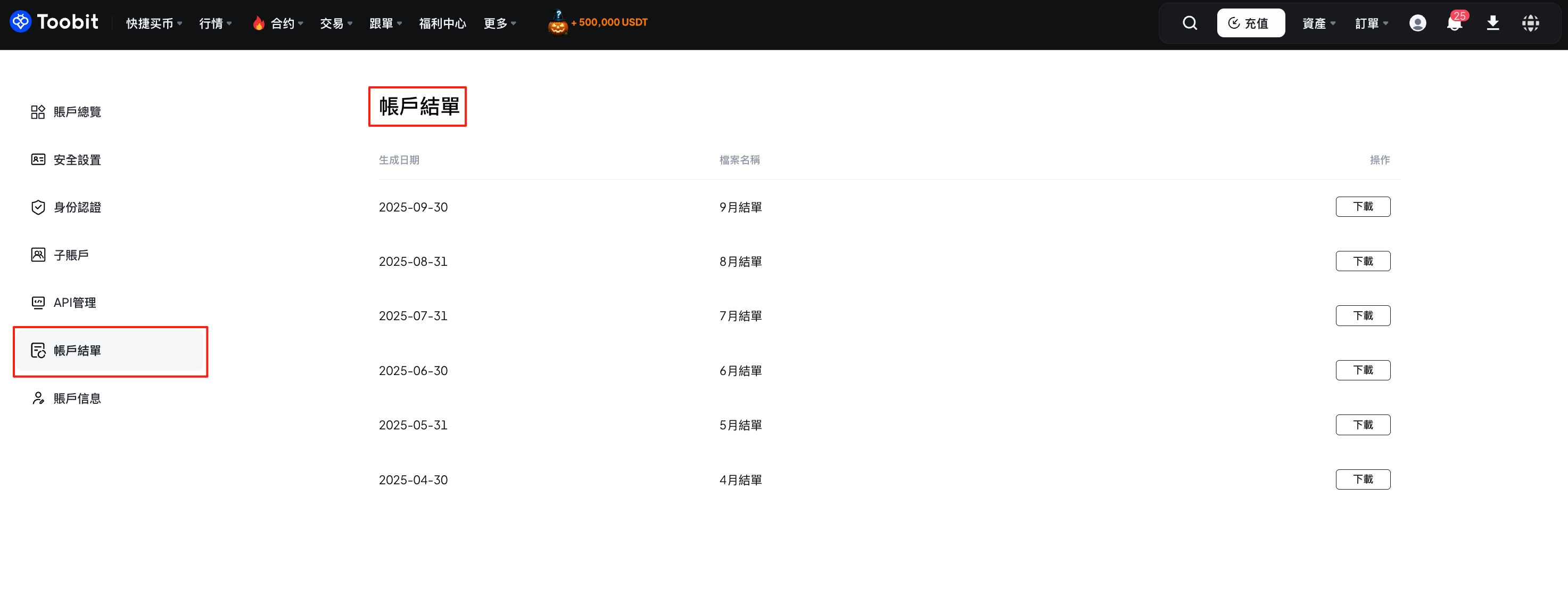 WEB端:登錄您的Toobit帳戶,點擊右上角【個人中心】>【帳戶結單】即可查看您的月結單。