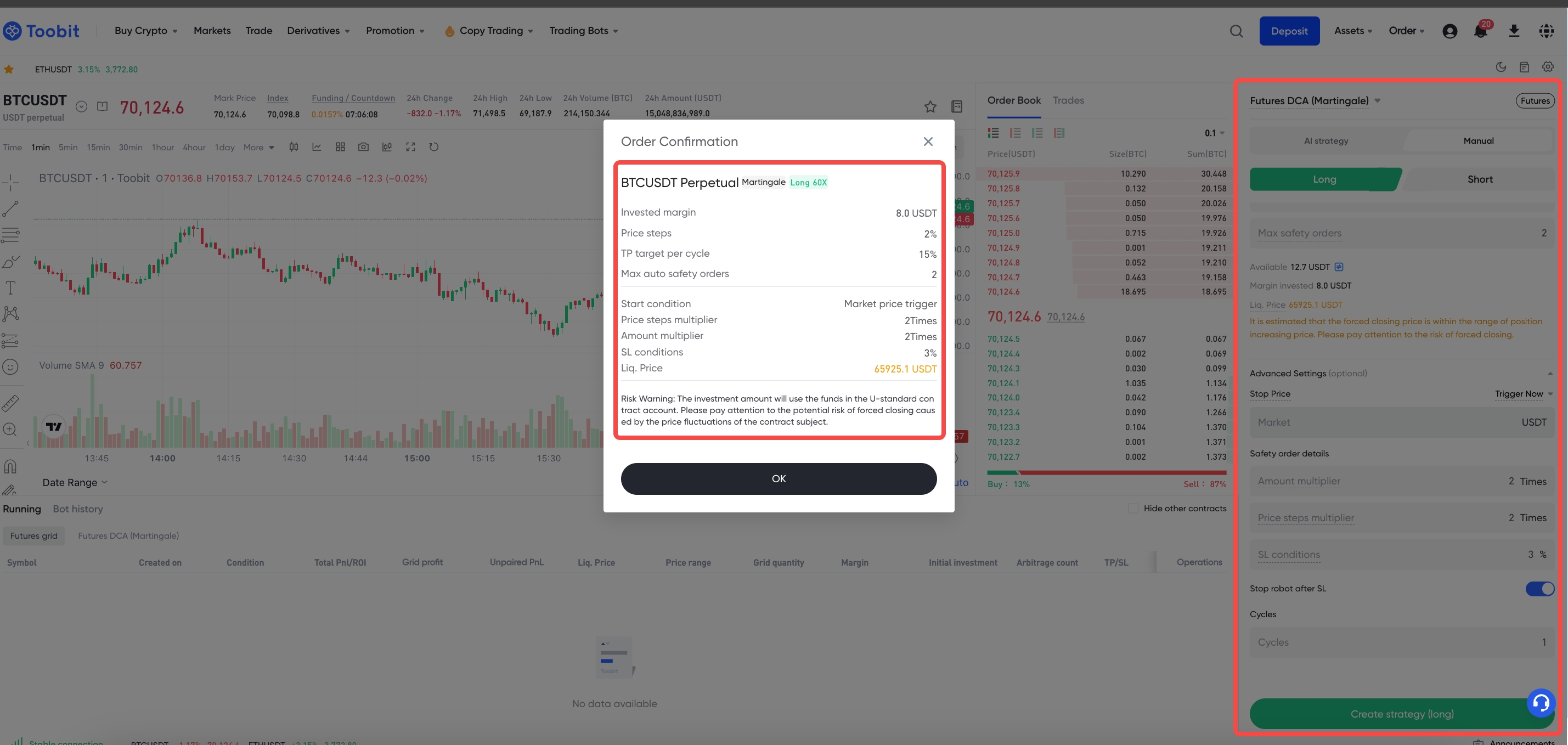 步驟 4: 請仔細檢查您創建的網格機器人信息,然後點擊確定開始交易。