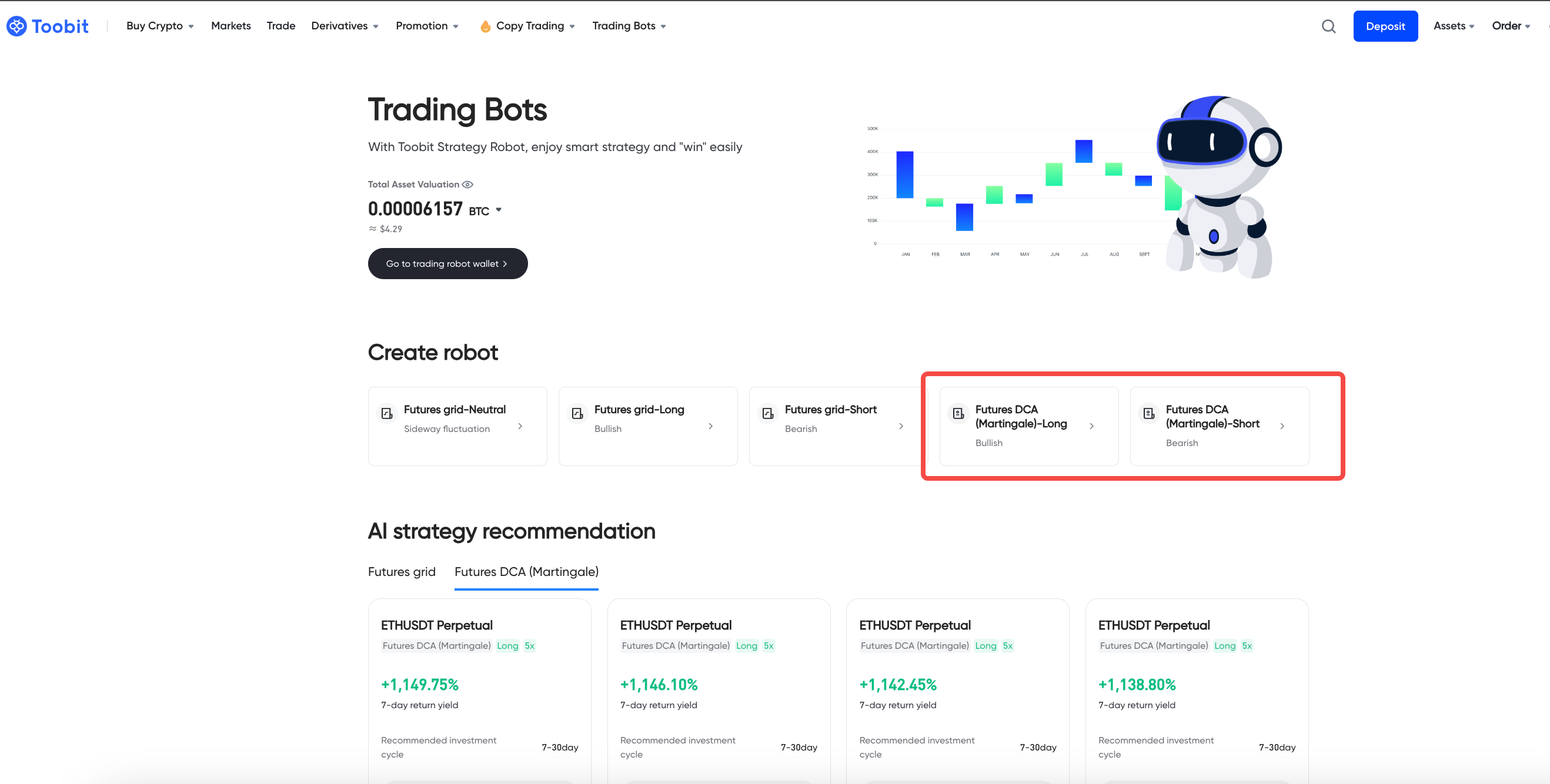 步驟 1:請點擊導航欄中的 Trading Bot 進入 Toobit Trading Bot 頁面。