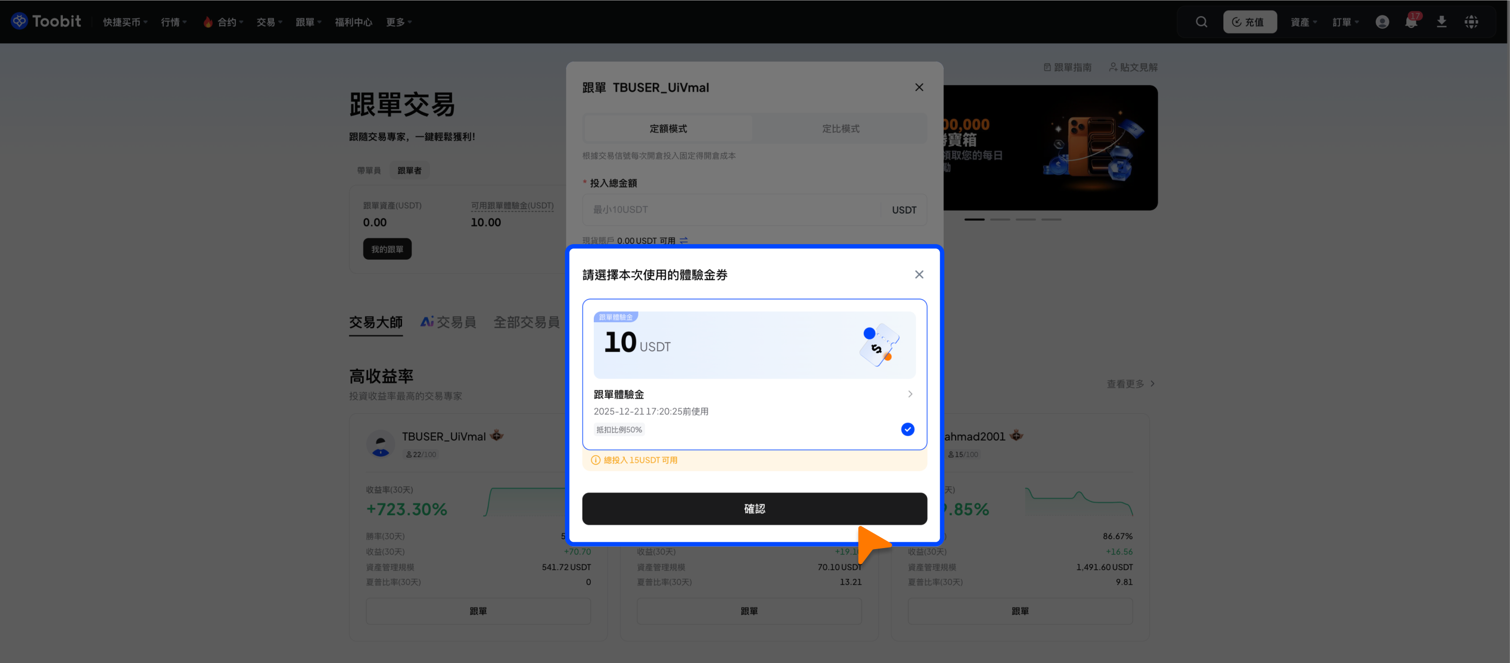 使用數量:每筆交易最多使用一張體驗金,不能疊加。若已有體驗金正在使用,需待其使用完畢或失效後才能使用新的。
